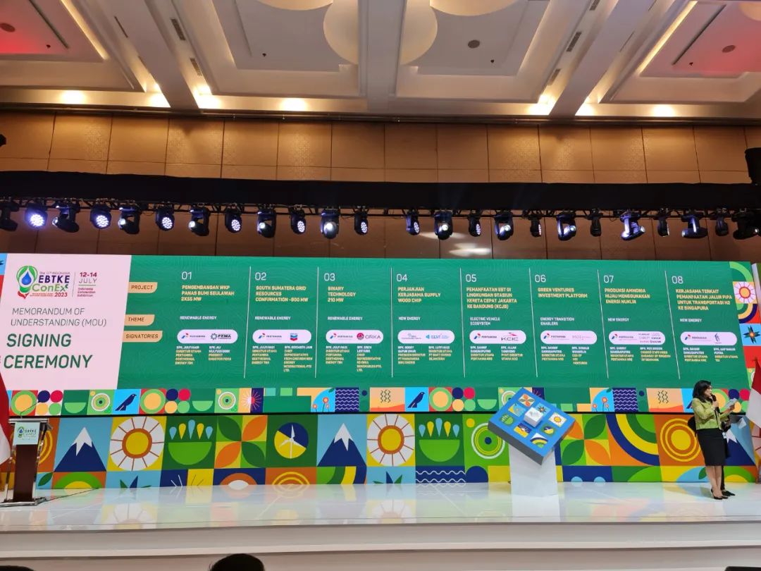印度尼西亞能礦部新能源總局(EBKTE)于7月12日舉辦了第11屆EBKTE展覽會(huì)。展覽會(huì)開幕儀式上,印度尼西亞石油公司下屬地?zé)岱止綪T Pertamina Geohtermal Energy Tbk. (PGE)與數(shù)家重要的潛在伙伴簽署了《諒解備忘錄》。