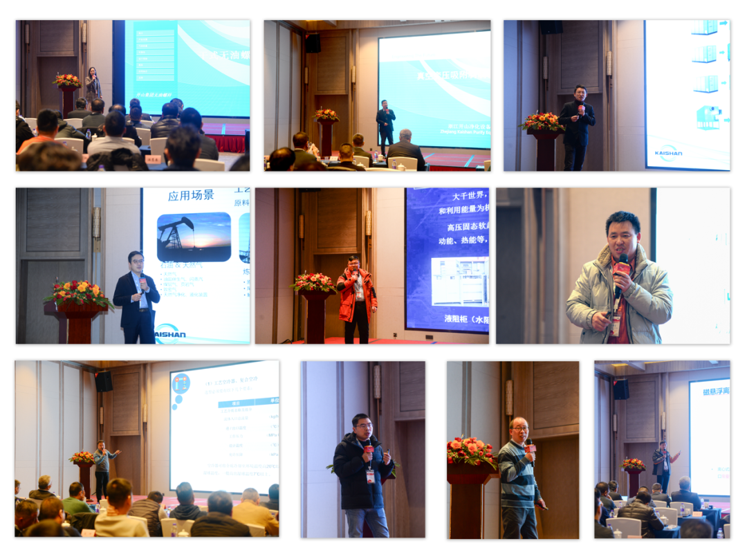 本次會議圍繞著“逐夢聚勢”的主題,來自集團內(nèi)的多位專家紛紛上臺發(fā)言介紹無油螺桿機、氫壓縮機、流體機械、工業(yè)/商業(yè)冷凍、智能高壓軟啟動、高效水冷卻系統(tǒng)等產(chǎn)品,全方位、多角度對代理商/合作伙伴進行了一次專業(yè)性的培訓(xùn)。與此同時,集團無油機產(chǎn)品部門,開泰克(上海)流體機械有限公司以及其他產(chǎn)品部門,開山壓縮機服務(wù)(上海)有限公司分別對他們各自的產(chǎn)品及服務(wù)進行了詳細(xì)的講解。