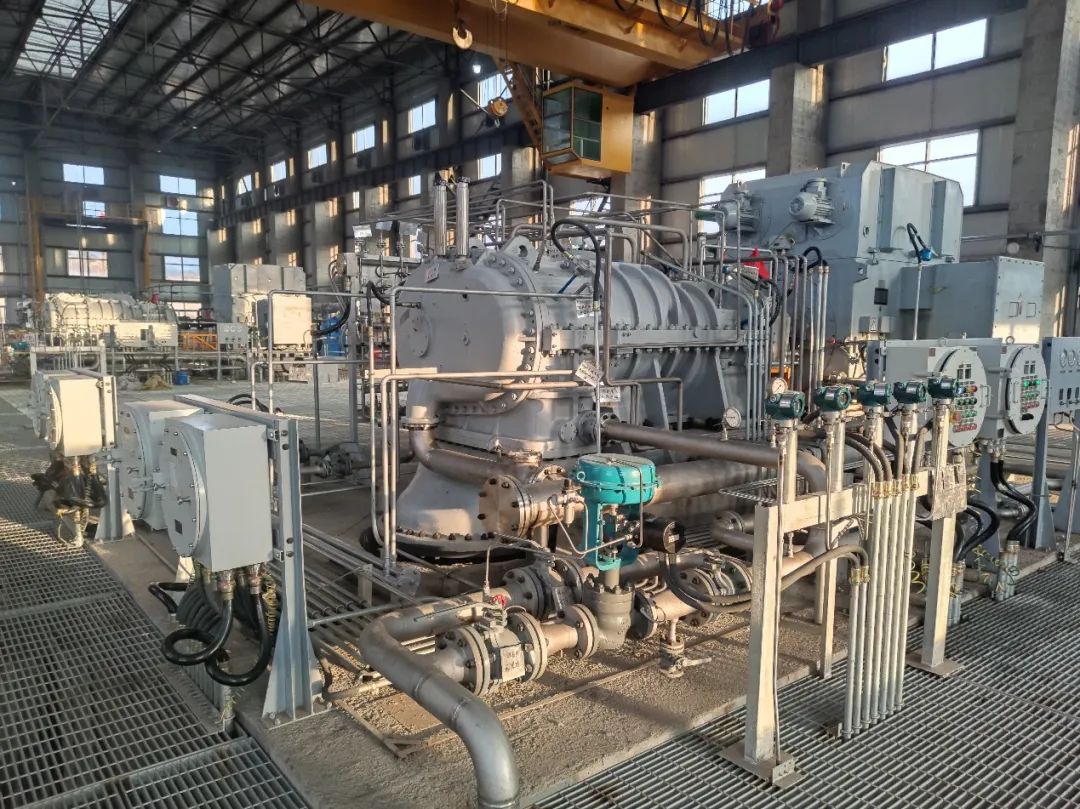伴隨著國家大力實(shí)施“碳達(dá)峰、碳中和”和“氫能源回收利用”的發(fā)展機(jī)遇。開山氣體壓縮機(jī)在已有工藝介質(zhì)氣壓縮多年成熟應(yīng)用經(jīng)驗(yàn)的基礎(chǔ)上,又開發(fā)了千立方米流量級(jí)別、更大壓比的KSG844型超大流量工藝螺桿壓縮機(jī)系列,壓縮機(jī)重量近60噸,最大容積流量可達(dá)1600m3/min),堪稱“大國重器”。該系列超大流量工藝螺桿壓縮機(jī)組是迄今為止國內(nèi)轉(zhuǎn)子直徑最大、單機(jī)流量最大的工藝螺桿壓縮機(jī),將引領(lǐng)中國工藝螺桿壓縮機(jī)行業(yè)向“更大、更高”方向發(fā)展。